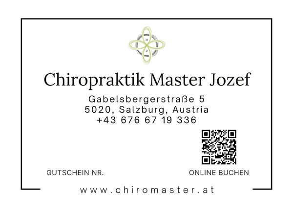Herzlich willkommen auf der Webseite von Chiropraktik Master Jozef! Seit 2009 setze ich mein Wissen und meine Erfahrung im Bereich der Chiropraktik erfolgreich ein, um meinen Patienten auf ihrem Weg zu Gesundheit und Wohlbefinden zu helfen.